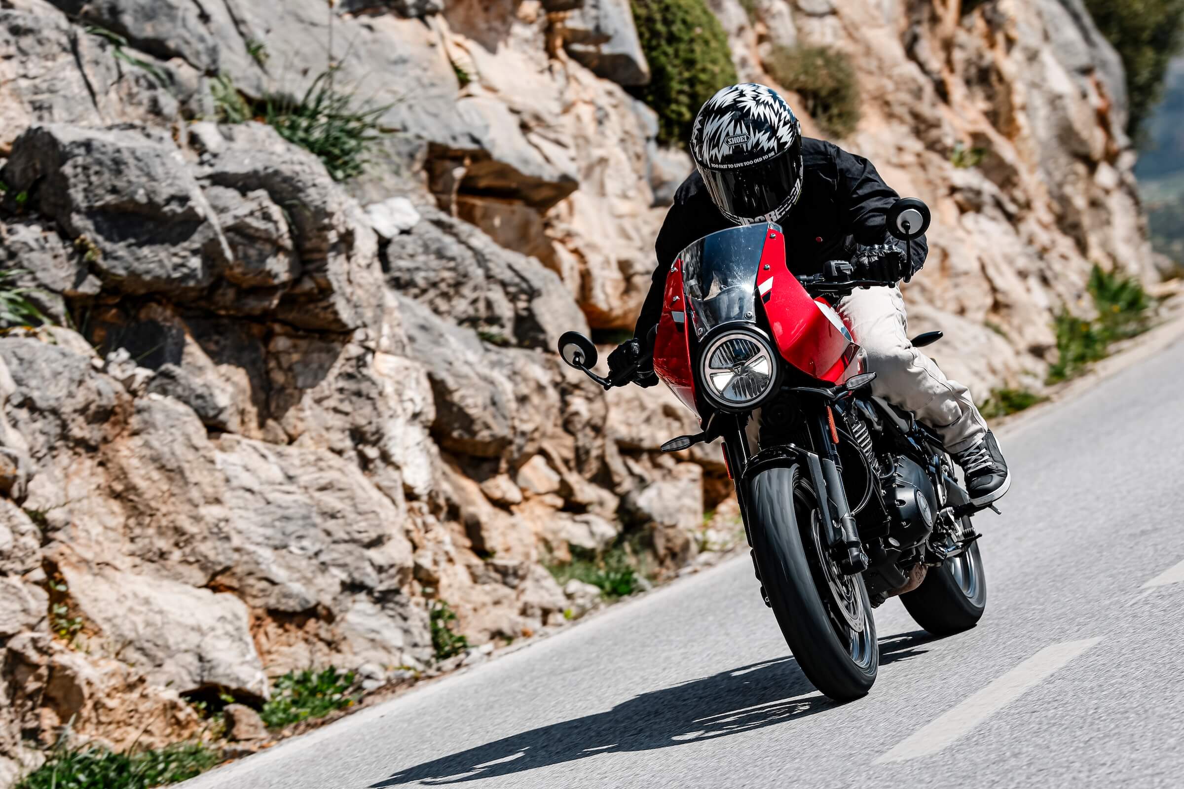 Partageant sa base avec sa sœur Thruxton, elle en reprend aussi les qualités : un excellent feeling général et cette capacité à vous laisser vous concentrer sur l’essentiel, à savoir la route.