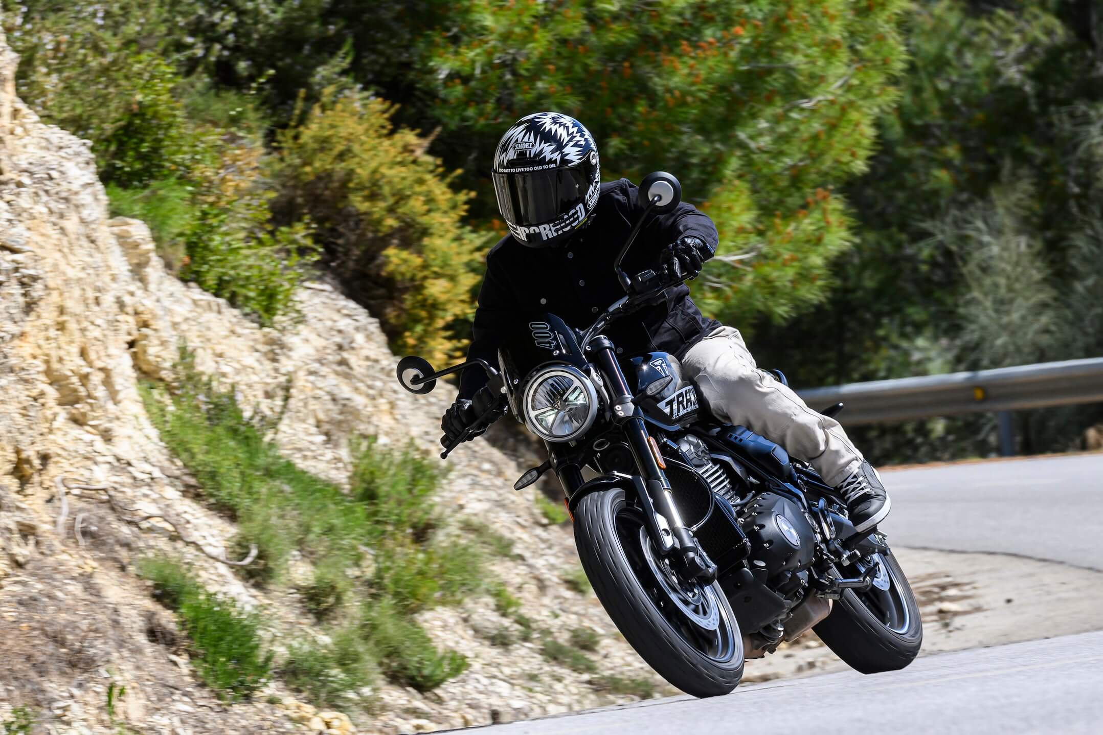 À mesure que le rythme s’accélère, on découvre un moteur plus expressif que sur les Speed 400 et Scrambler 400, ainsi qu’une sonorité finalement agréable. Les rares portions de voie rapide permettent d’accrocher un 160 km/h, même si ce n’est clairement pas là qu’elle sera le plus à son aise. En revanche, elle peut tenir le 130 km/h sans souffrir.